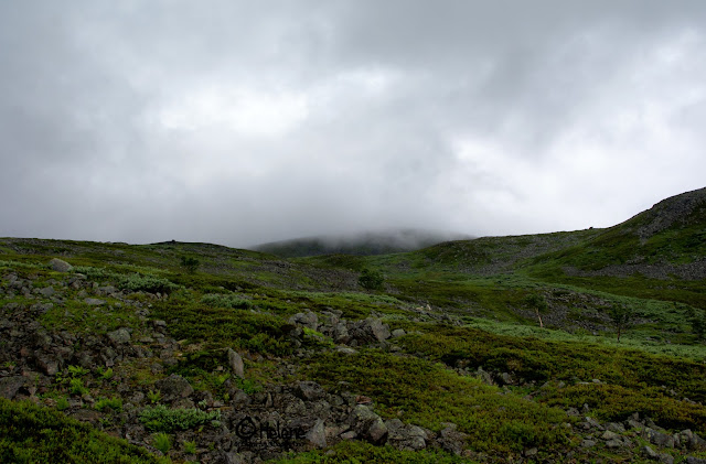 Men etter å ha slitt meg oppover bakkene en god time - for det var stort sett bare oppoverbakke hele veien, begynte jeg så smått å nærme meg sletta mellom tindene - og YEZZ - formen begynte å komme seg - og dermed fikk jeg spadd opp nok energi til å ta mine første bilda på turen ;)